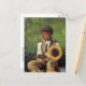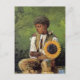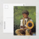 A fine art postcard with the painting, Taking Sunflower to Teacher (1875), by Winslow Homer (1836-1910) an American artist from the realism movement. A young African American schoolboy seated holding a large sunflower.