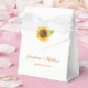 These wedding favor boxes feature sunflowers. The front and back of the box have flowers, bride and groom names and wedding date. These wedding favor boxes are part of the Sunflower Watercolor Wedding Collection which includes a full range of matching wedding stationery such as wedding invitations, reply cards, information cards, address labels, stickers, postage stamps, envelopes, favor stickers, wishing well cards, programs, menus, bridal gifts and much more. Visit the collection page in our store to see the full range range of matching products that you can personalize for your wedding.