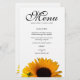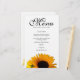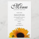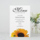 A cheerful yet elegant floral wedding menu card, with a sunflower photo. A matching hand sanitizer is also available. A lovely choice for autumn, summer or rustic parties, weddings, bridal and baby showers, or even businesses like restaurants. Available in a recycled paper for an eco-friendly alternative.