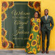 Introducing our exquisite sunflower themed wedding backdrop-a perfect choice for couples seeking a rustic, country touch. This enchanting wedding program captures the beauty of sunflowers accentuated with charming forest green and faux gold details. The vibrant sunflowers symbolize joy, happiness and blossoming love, setting the perfect tone for your special day, The lush forest green color adds a touch of rustic charm, reminiscent of lush meadows and the tranquility of the countryside. The delicate faux gold accents bring an element of sophistication and glamour, elevating the overall design to create a truly captivating ensemble. This product is part of our Sunflower Wedding Forest Green and Gold Rustic Wedding ensemble. Go to this collection to select everything you need to have a beautifully cohesive wedding. Edit text from the product page by clicking the “personalize it” button. If you want to customize further, click the “edit using the design tool” blue button to change font styles, colors, edit text size or move move text around. This makes a great wedding photo backdrop. If you need another product you don’t see in the collection, feel free to message us and we will be happy to design and add that product to the collection.