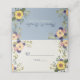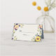 Elegant, modern, boho, rustic, botanical, dusty blue wedding place card with name and table number, watercolor flowers, sunflowers and greenery.