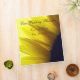 Beautiful close-up photo of a yellow and brown sunflower against a soft yellow background. Sunlight shines through the soft flower petals, creating an elegant gold abstract design. Personalize with names of bride and groom and wedding date. May be customized for other occasions.