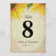 This double sided wedding reception table number features pretty yellow sunflowers on a vintage background and black wording. They are perfect for sunflower wedding reception themes, garden parties, barn weddings and more. Each table number must be customized and individually added to your shopping cart. The table number cards are two sided with space to add the bride and groom's names. Be sure to change the wording on both sides. Designed by Victoria at VG Invites. To see more of Victoria sunflower wedding reception decor visit www.zazzle.com/vginvites