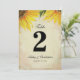 A beautiful sunflower wedding reception decoration. Table numbers with a pretty yellow floral design on the front and back perfect for barn weddings, garden weddings, and sunflower wedding themes. Each table number must be customized and individually added to your shopping cart. The table number cards are two sided. Be sure to change the wording on both sides. Designed by Victoria at VG Invites. To see more of Victoria sunflower wedding reception decor visit www.zazzle.com/vginvites