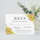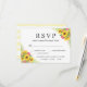 Sunflower Wedding RSVP Card with Dinner Choice and number attending option. The card is decorated with a sunflower corner bouquet in the top right and bottom left corners. The back of the card is decorated with soft yellow watercolor stripes.