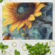 Sunflower with Butterflies with Customizable Text Kitchen Towel