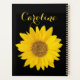 A photo of a single bright yellow sunflower and a template for first name on black background.