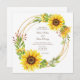 Boho wedding sunflower golden ring invitation. Summertime wedding, watercolor art illustration design.