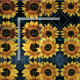 Giant sunflowers, yellow rustic country denim blue jeans craft sewing material. Beautiful floral pattern design fabric. Image copyright Marg Seregelyi Photography.