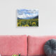 Sunflowers against mountain backdrop canvas print