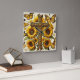 This vibrant square wall clock features a decorative, ornate cross at its center, surrounded by a lush arrangement of golden sunflowers and fluttering yellow butterflies. The design creates a cheerful and spiritually uplifting scene, blending natural beauty with symbols of faith for a warm home accent.