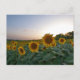 Photo of a field of sunflowers taken at dusk with the sun having just gone down over the horizon. Taken in south west France.