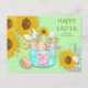 Sunflowers Basket Happy Easter Eggs Name Green Holiday Postcard