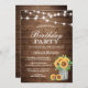 Sunflowers Birthday Party Rustic String Lights Invitation