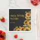 Rustic, elegant custom birthday party "Happy Birthday" paper napkins with yellow sunflowers on a black background. Personalized with the name of the guest of honor. Contact me for assistance with your customizations or to request additional matching or coordinating Zazzle products for your celebration.