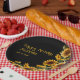 Rustic, elegant custom birthday party "Happy Birthday" paper plates with yellow sunflowers on a black background. Personalized with the name of the guest of honor and her party date. Contact me for assistance with your customizations or to request additional matching or coordinating Zazzle products for your celebration.