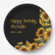 Sunflowers Black Rustic Elegant Happy Birthday Paper Plates