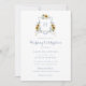 Sunflowers Blue Hydrangea Crest Monogram Wedding Invitation