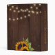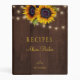 Editable faux gold text recipes mini binder featuring rustic strings of twinkle lights and big sunflowers on brown barn wood background. Insert your text in the spots! This recipe book can be a beautiful gift for your own kitchen or a keepsake personalized gift for someone special, anniversary, birthday, Christmas, bridal shower or wedding gift.