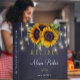 Editable text recipes binder featuring rustic big sunflowers bouquets and strings of twinkle lights on a dark midnight navy blue chalkboard background. Insert your text in the spots! This recipe book can be a beautiful gift for your own kitchen or a keepsake personalized gift for someone special, anniversary, birthday, Christmas, bridal shower or wedding gift.
