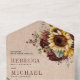 Sunflowers Burgundy Floral QR Code Burlap Wedding All In One Invitation
