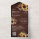 Sunflowers Burgundy Floral QR Code Wood Wedding All In One Invitation