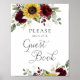 Sunflowers Floral Burgundy Greenery Wedding Guest Book Sign. Rustic Wedding Signage.