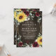 Sunflowers Burgundy Roses Rustic Geometric Wedding Invitation
