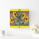Sunflowers Butterflies Rustic Barn Board Square Wa Wall Clock