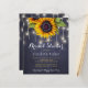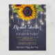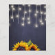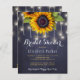 Rustic country style bridal shower party stylish budget affordable invitation template on dark midnight navy blue chalkboard background featuring big yellow gold sunflowers bouquets and strings of white twinkle lights. +++++++++++Personalize with your details! You can choose to customize it further changing fonts and colors of lettering. +++++++++++ The invitation is suitable for summer or autumn fall outdoor garden / backyard rustic country bridal showers / brunch /luncheon parties.