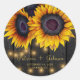 Editable text mailing envelope seal sticker featuring rustic big beautiful sunflowers on a dark brown barn wood background with string lights. Ideal for your summer or autumn fall elegant rustic country outdoor backyard or farmhouse wedding. +++++++ Personalize it with the bride's and groom's names and wedding details!