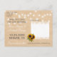 Yellow gold sunflowers bouquet, lace borders and strings of white twinkle lights on beige burlap photo save the date wedding postcard. +++++++++ Easy to personalize with your names and text! ++++++++++ Suitable for floral summer or autumn fall / garden backyard rustic country or farmhouse themed weddings.