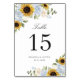Sunflowers Dusty Blue Floral Rustic Table Number. Elegant Sunflowers Greenery Wedding Table Numbers