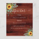 Sunflowers eucalyptus brown wood bar menu flyer