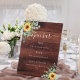 Rustic brown wood as background. Decorated with watercolored sunflowers and eucalyptus greenery. With the text: Open bar. Personalize and add your bar menu.