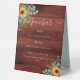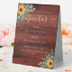 Sunflowers eucalyptus rustic brown wood bar menu table tent