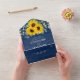 Sunflowers Eucalyptus String Lights Navy Wedding All In One Invitation
