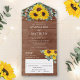 Sunflowers Eucalyptus String Lights Wood Wedding All In One Invitation