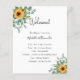 A modern, elegant, wedding program, timeline. A chic white background. Decorated with sunflowers, green watercolored eucalyptus greenery. Personalize and add your names and wedding details. Black colored letters. If you have more text it's possible to reduce the line space, and remove the decor on the back.