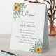 Sunflowers eucalyptus wedding program details table tent