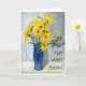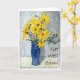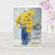 A 'get well soon' card with a blue vase of golden sunflowers, from an original oil pastel painting by Judy Adamson. Blank inside for your own message. See also birthday and 'thank you' cards with this design.