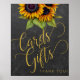 Simple gold stylish calligraphy script "cards and gifts" wedding sign with handwritten like typography on dark gray chalkboard background with a beautiful yellow gold and rusty orange sunflowers bouquet. ---- Suitable for formal elegant chic rustic summer or autumn fall weddings. ---- If you need help, please contact me!