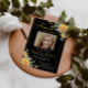 This invitation features an elegant golden sunflowers and frame with the departed loved one's photo in the center on a black background. Just personalize the invitation and replace the photo of your loved one and information regarding the funeral/memorial service. You can customize the invitation to any way you would like to remember and honor the memory of your loved one. Please note: "Forever in our hearts", the sunflowers greenery golden frame and other graphic elements and artwork cannot be edited, changed, deleted, or moved. They are fixed.