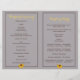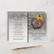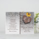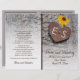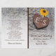 Sunflowers, metallic rusted heart with monogram on wood rustic wedding ceremony and party folded program featuring a brown rusted metallic heart with initials nailed on weathered grey barn wood board and three yellow sunflowers. This monogrammed floral wedding template design is fully customizable and is part of a wedding set or collection perfect for a summer or fall country barn wedding. You will have to fold it in the center. Choose only this type of paper-value as it folds well.