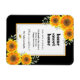 A chic black background decorated with rustic watercolored sunflowers and a happy smiling bumble bees. With the text: Home Sweet Home. Personalize and add your new address and name.