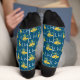 Sunflowers & Leaves Monogram Blue Pattern Socks