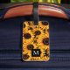 This modern luggage tag design features a Sunflowers Pattern and Background, with your initials in White text for a look that is simple Black backgound and stylish, yet professional