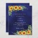 Sunflowers navy blue budget wedding invitation