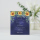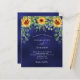 Decorated with sunflowers, eucalyptus greenery. Navy blue background, the blue color is uneven. Personalize and add your names and party details.