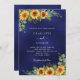 Sunflowers navy blue eucalyptus luxury wedding invitation